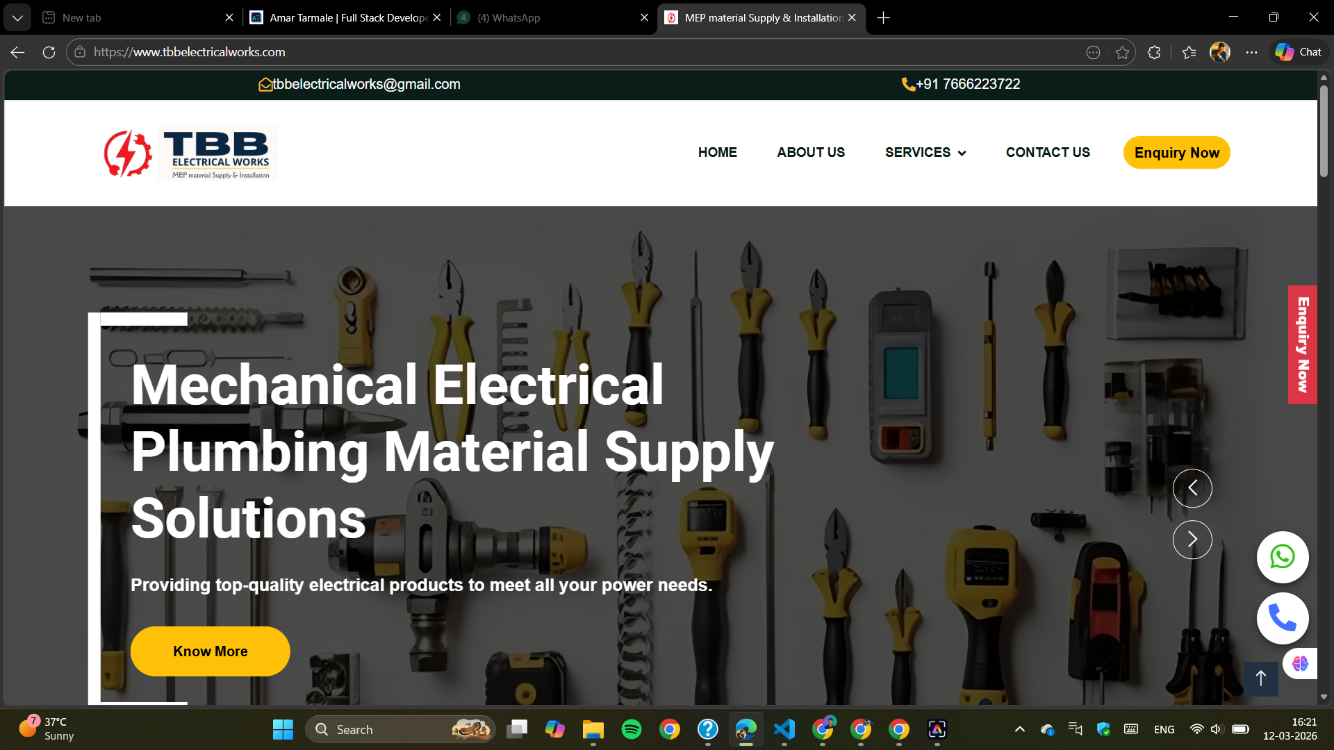 Business website for MEP & Industrial Material Supply, Installation, and AMC Services.